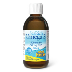Natural Factors SeaRich Omega 3 1500mg with D3 1000 IU- Lemon Meringue, 200ml