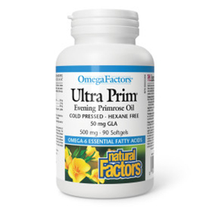 Natural Factors OmegaFactors Ultra Prim Evening Primrose Oil is derived from the highest quality evening primrose (Oenothera biennis) seeds, and extracted by cold pressing (expeller pressing) without the use of hexane or other solvents. This ultra-purified source of omega-6 essential fatty acids is highly stable and free of preservatives, offering 50 mg of gamma-linolenic acid (GLA) and 360 mg of cis-linoleic acid (LA) in each 500 mg softgel.